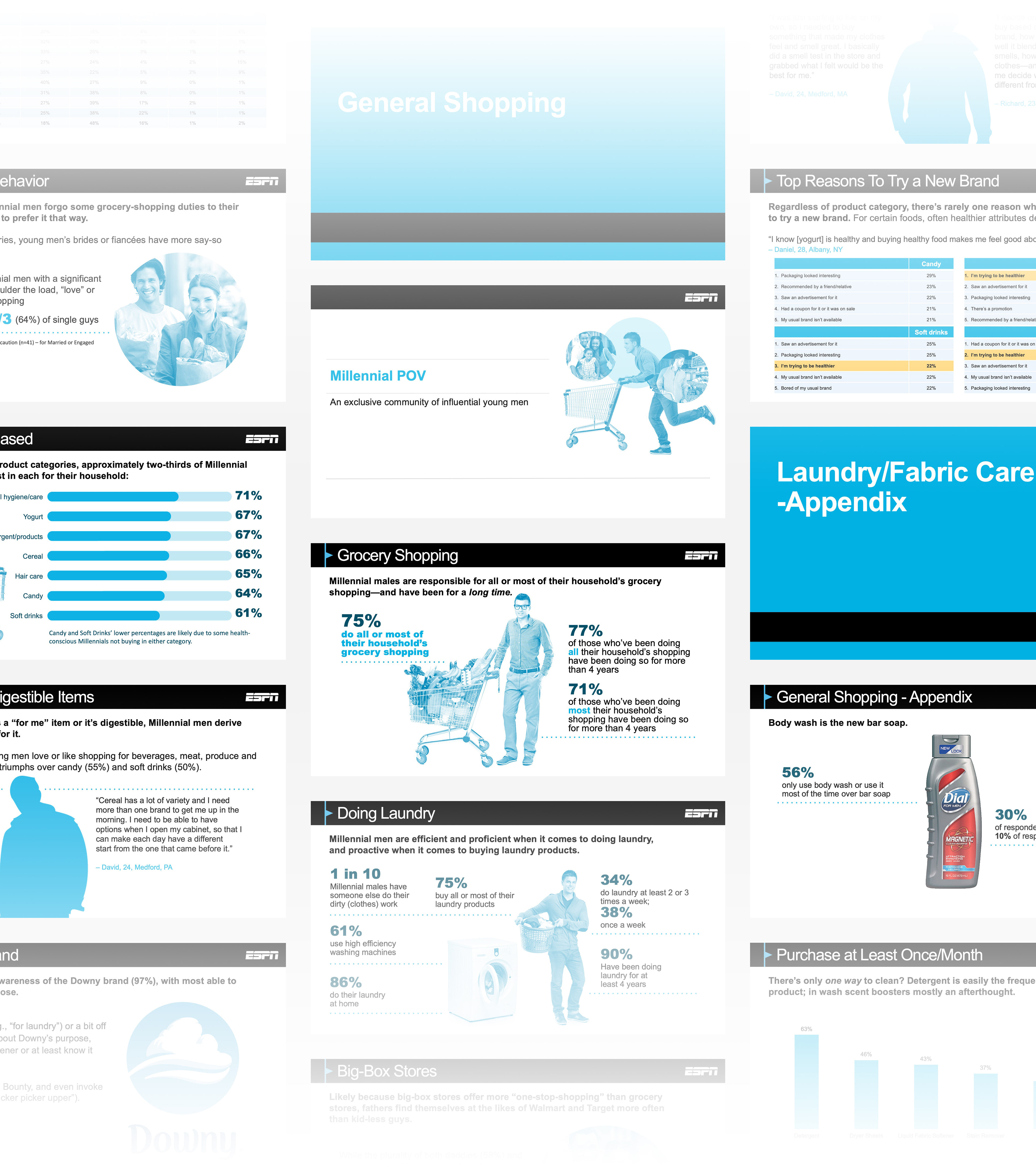 Market research report for ESPN on millennial male shopping habits specific to laundry care.