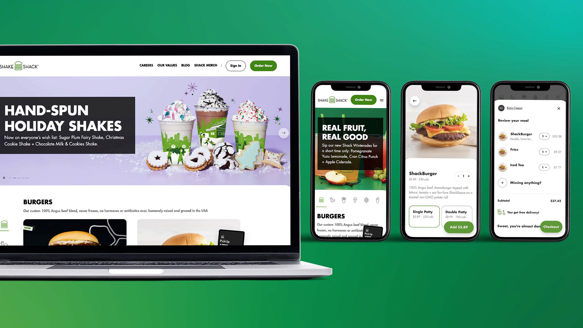 Shake Shack underwent a full digital transformation, including redesign of the ordering and marketing site experience as well as in-store ordering kiosks. I played a key role in redesigning the marketing website, designing enhancements to their ordering website and in-store ordering kiosks, and updating the overall digital design system. My contributions helped to create a more personalized guest experience and align with evolving market needs. As a result of this digital transformation, 42% of their sales are now digital, and they experienced an increase in digital sales of up to 300%.